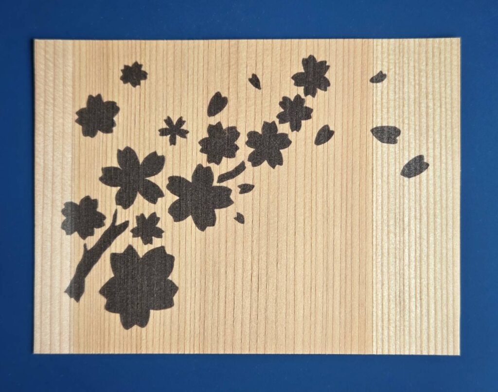登米市産のスギを、薄く加工した台紙